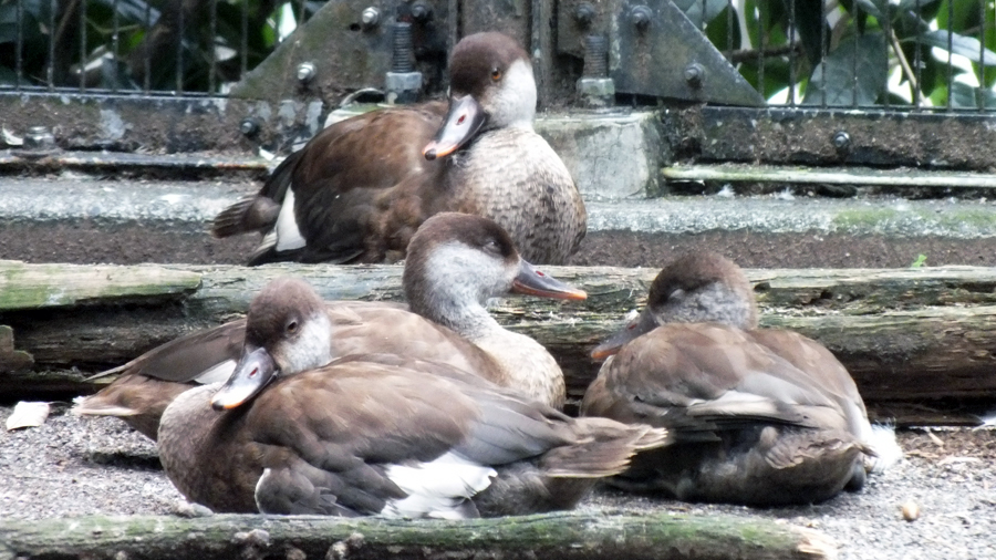 今年(2017年)6月に孵化したアカハシハジロも先日、育雛舎からマレーバク舎隣の「カモ池」へ移動しました。この時期、おとなのアカハシハジロはオスとメスで外見がはっきりと違いますが、今年生まれの若鳥たちはまだほとんど同じに見えます。そのため性別はまだわからない……と思われるかもしれませんが、この若鳥たちの性別はすでに判明しています。じつは、DNAを用いて性別を調べたのです。