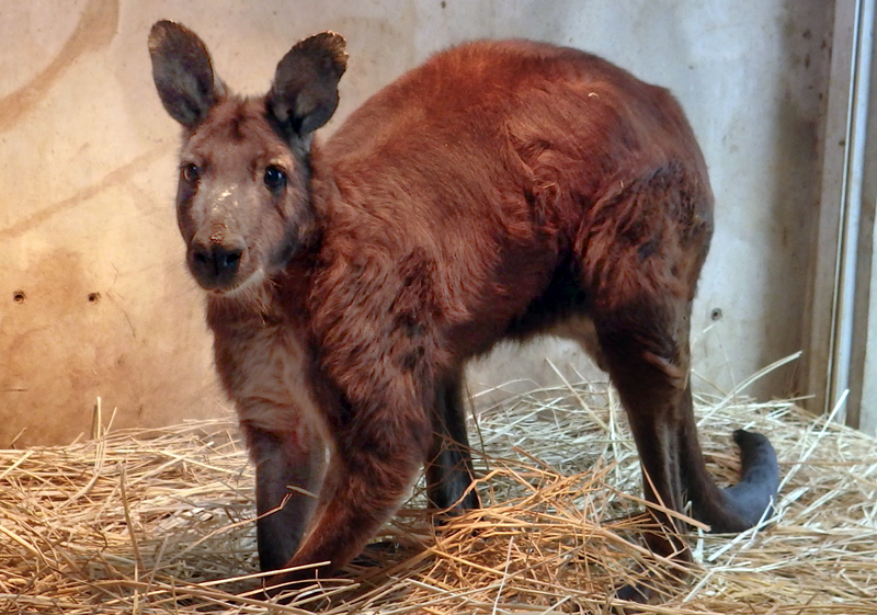 かつては群れでいちばん強かったのに、ケンカに負けて追いやられてしまったリク。飼育下のケナガワラルーはオスの順位の入れ替わりが激しく、かつ、飼育スペースがかぎられているため、負けたオスは群れの中で行動するのが難しいようです。再びチャジロウにやられそうになったときは“心が折れかかって”しまったようで、目の輝きを失って見えましたが、今では落ち着き、居心地のよい安全な個室でのんびり過ごしています。お立ち寄りの際は、リクをあたたかく見守ってください。