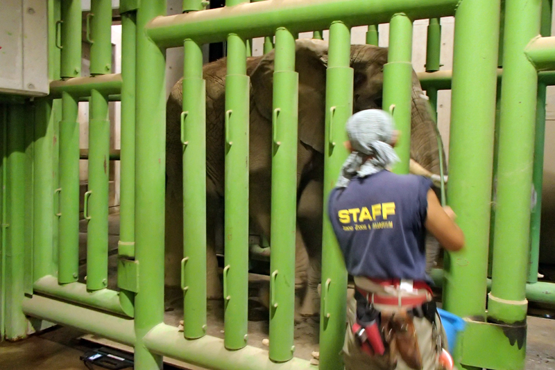 アフリカゾウ『砥夢』のトレーニング」(2013年11月4日)