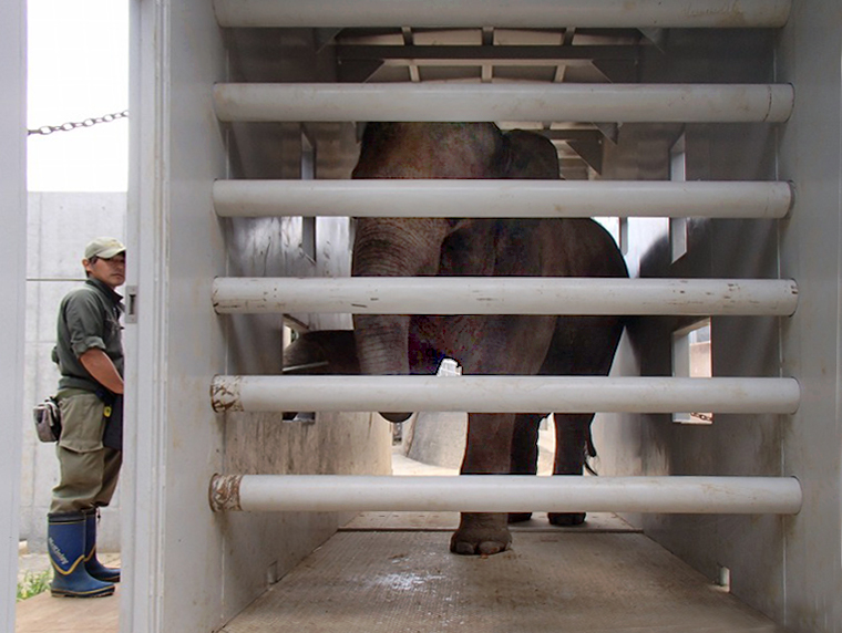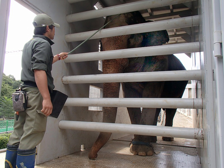 今後はそれぞれの進捗状況に合わせ、さまざまな音や箱の中での係留、入口を馬栓棒(出入りを制限するために利用する直径10センチ程度の筒状の棒)で閉めるなど、輸送当日の環境に近づけていく予定です。ゾウと職員がともに安心して引っ越しができるよう、じっくりと準備を進めています。