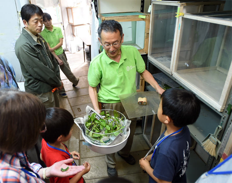 2016年5月14日土曜日、東京動物園友の会の会員の方を対象に、多摩動物公園で「昆虫園見学会」を開催しました。友の会の昆虫園見学会は11年ぶりです。今回は、昆虫園本館2階の昆虫ホールで「コオロギ相撲」を楽しんだ後、ふだん見られない飼育室など3か所(チョウ、バッタ、テラリウム)を順に見学していただきました。