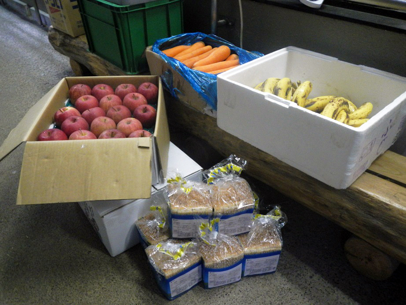 ゾウのトレーニング用のえさを用意するとき、飼育係には包丁さばきの腕が必要になります。トレーニングの「ごほうび」として与えるのはリンゴ、バナナ、ニンジン、パンなど、基本的に草以外のえさです。これらを小さく切るのですが、その総量は1日分で約30キロにもなります。
