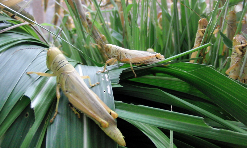 食草はイネ科の植物で、ススキやサトウキビなど、硬めで乾いた葉を好みます。生息地ではたびたび大発生し、サトウキビ畑を丸坊主にする被害が出ています。