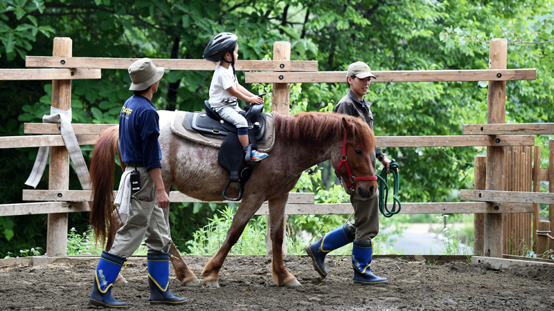 そのちがいを見て体験していただこうと、現在週に一度ほど「家畜馬トークイベント」をおこなっています(下記リンク)。初めに家畜馬と野生馬のちがいについて簡単にお話しし、その後でウマとふれあい、乗馬体験をしていただくイベントです。人とふれあえるのが家畜馬の最大の特徴ですので、ぜひ多摩動物公園のこのイベントを通じて、家畜馬と野生馬のちがいについて知っていただければと思います。