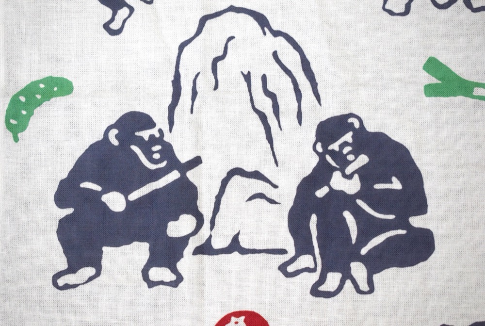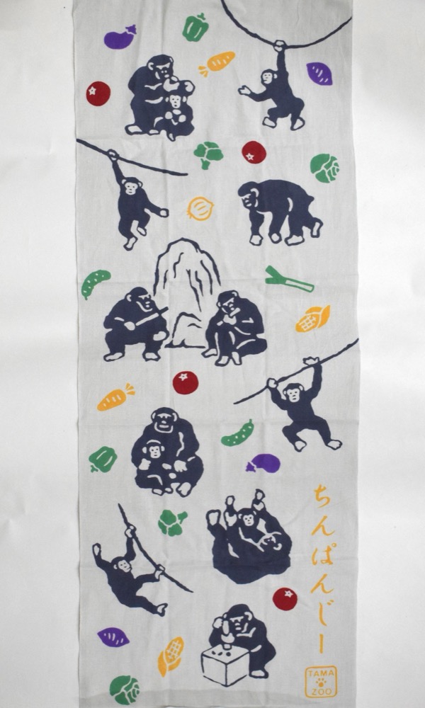 さて、こちらの手ぬぐい、チンパンジーの他に何が描かれているでしょうか?