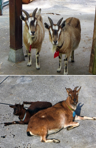 写真上:新登場のトカラヤギ「ラン」(左)と「ツキ」(右)