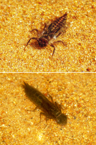 オニヤンマのヤゴは、クロスジギンヤンマよりも目が小さく、全身に毛が生えていて水底の砂や泥の中に潜ってくらしています。