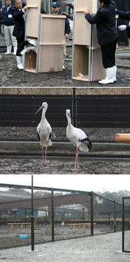 以前の記事でお知らせしたとおり、2012年12月4日、小雨の中、多摩動物公園から、千葉県野田市のコウノトリ飼育施設に向けて、ニホンコウノトリのペアが旅立ちました。