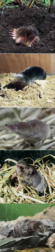 日本にすんでいるモグラのなかま(食虫目)には、姿や形、生活の場所など、さまざまな種類が知られています。そこで、多摩動物公園「モグラのいえ」の住人たちの顔ぶれをご紹介しましょう。