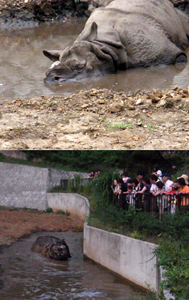 2010年の夏はみなさんご存じの通り記録的な猛暑で、しかもその暑さが梅雨明けごろからこれでもか、とたたみかけるように続いた気がします。この異常気象に参ってしまったのは私たちヒトばかりではなく、高温多湿のインドやネパール原産で、比較的暑さに強いと思われているインドサイにとっても例外ではありませんでした。そんなひと夏を振り返ってみたいと思います。