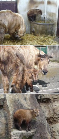 ターキンの子育ての特徴として、母親が餌を食べる際、餌に近づいてくる子どもを角で追い払うしぐさが見られます。ターキンは、同じ餌場からほかの個体と一緒に食べることを嫌うため、自分の子どもも例外ではないのでしょう。