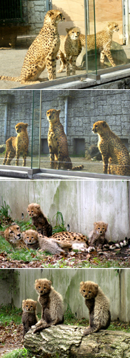 2009年10月28日、約1年ぶりにチーターのメス「スミレ」が多摩動物公園に帰ってきました。スミレは繁殖のために富士自然動物公園へ「長期出張」し、今年(2009年)1月6日に4頭の子を無事出産しました。スミレは初産ながら順調に子育てをし、子どもも雄大な自然の中でのびのびと育ったようです。
