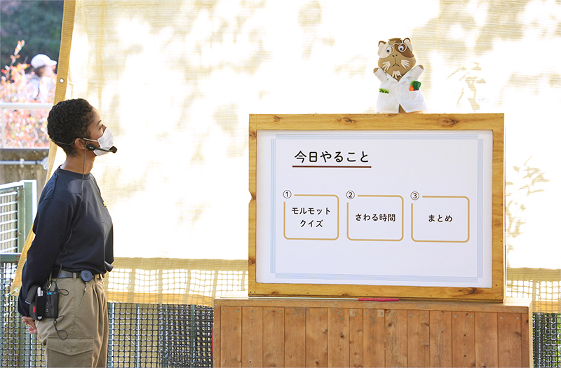 多摩動物公園では、紙芝居を見たり、クイズに参加したりしながら、モルモットのことを楽しく知ってもらう