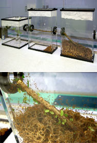 あたらしく展示した群れは、2008年11月10日に南米のペルーからやってきました。ハキリアリは葉をかじり取って巣に持ち込み、そこで菌類を栽培して、「菌巣」をつくり、自分たちの食糧にします。あたらしい群れは日本にやってきて半年あまり。まだ菌巣も小さいのですが、これから徐々に大きくなっていくと思いますので、見守ってやってください。