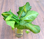 そこで、昨年(2008年)の夏は、小松菜のかわりになる植物を園内で探してみました。いくつか見つかった植物のうち、夏期に継続して採取してもなくなる心配がないのがギシギシでした。どこにでもある「雑草」ですが、ダイトウクダマキモドキに与えてみると食いつきがよく、幼虫も元気に育ち、栄養的にも問題がなさそうなので、夏場のえさとして採用することになりました。