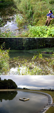 写真下:まわりをコンクリートで固められてしまった池