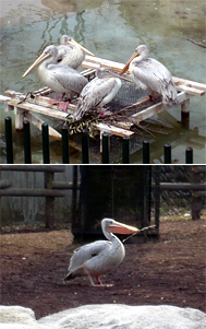メス3羽は2006年12月に導入した個体で、現在推定2歳の幼鳥です。通常、ペリカンは3~4歳で性成熟するといわれています。繁殖にすぐ結びつくことはないと思いますが、オスとメスが行動をともにし、営巣行動を始めたことはよい兆しです。なんとかコシベニペリカンの繁殖につなげたいものです。