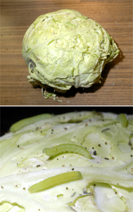 ごぞんじのとおり、キャベツをむいていくと、あらわれる葉の色はだんだん白くなります。青い葉を食べて育った幼虫は体色も濃く、元気に育ちますが、白い葉っぱを食べて大きくなった幼虫は体の色が薄く、虚弱に育つようです。