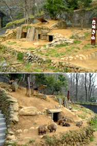 U字溝を埋め込んだじょうぶな巣穴や、岩陰などと同様、日よけができる場所、食事風景もごらんになれるよう工夫した餌場など、タヌキたちがより自然に近いかたちで行動するすがたが観察できます。