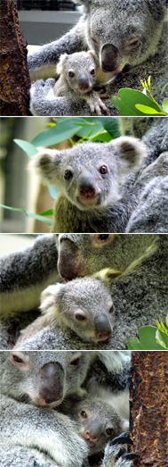 こちらのニュースでお知らせしたとおり、2006年11月29日、多摩動物公園のコアラ「ミリー」(メス、6歳)と「モモジ」(オス、9歳)のあいだに生まれた赤ちゃんが、母親のおなかの袋(育児嚢)から外に出てきました。