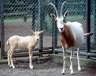 シロオリックスの英名は scimitar-horned oryx 。scimitar というのは、アラビア・ペルシア起源の「三日月刀」。角のかたちを刀にたとえたわけですが、今回生まれた赤ちゃんの角は、まだ10センチくらいです。