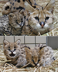 No.103でご紹介したサーバルの赤ちゃん(2月24日生まれ、オス2頭)も、すくすく育っています。
