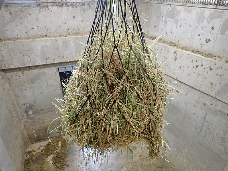 ヘイネットに詰めた乾草と青草