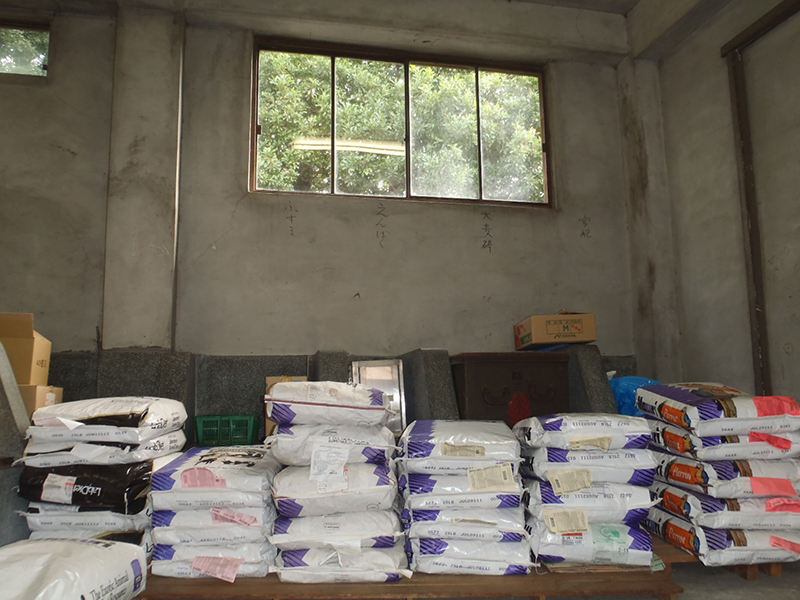 当時はそれぞれの動物専用の人工飼料がなかったため、飼育係が担当する動物に合わせて各サイロから大麦何kg、ふすま何kg、栄養添加剤何kgと計量して混合していたのです。しかし、1970年ごろからそれぞれの動物専用につくられた固形飼料(ペレット)が登場し、計量や配合の作業は少なくなったのでふつうの倉庫となったそうです。