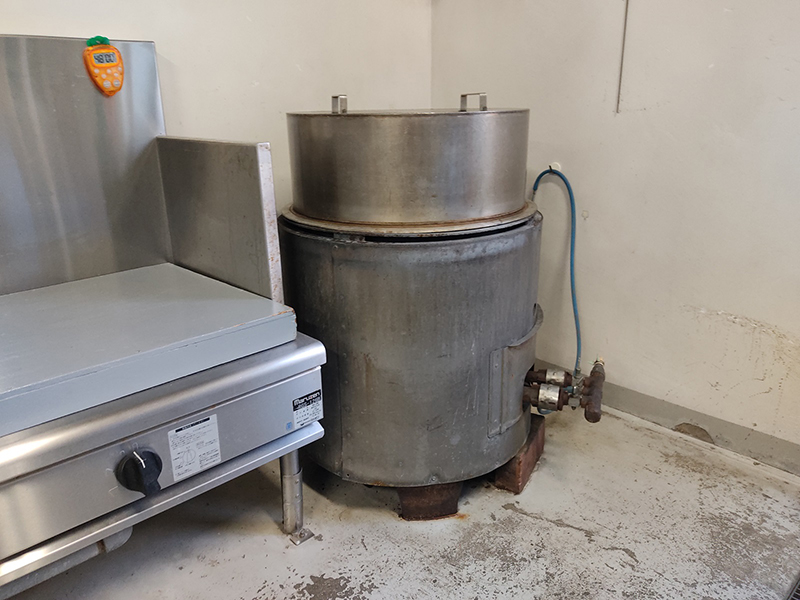 最後にご紹介したいのが、サツマイモやニンジンを毎日20kgほど蒸かしている大釜です。旧飼料室から引き続き使われており、定年退職した飼育係OBが新人として上野動物園に来たころからあったそうなので、おそらく数十年は現役で活躍しています。