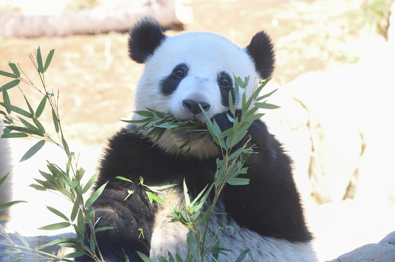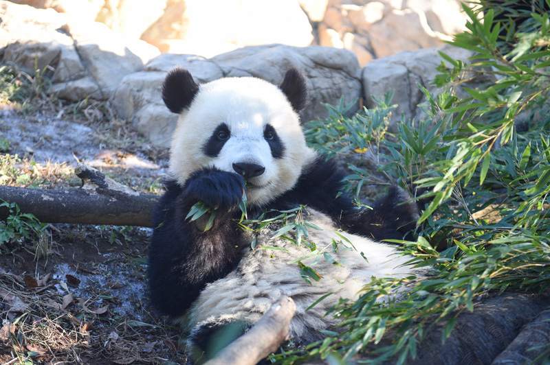 えさとしてモウソウチク、シノダケ、マダケなどのタケを中心に与えており、副食であるパンダ団子、ニンジン、リンゴもよく食べています。給餌量は、シンシンの採食状況や体重の変化、子どもへの授乳に応じて適宜変更しています。