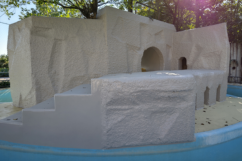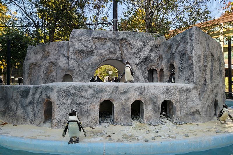 上野動物園西園にあるペンギン舎では、2022年9月から展示改善のための改修工事をおこない、11月1日から展示を再開しました。今回の改修工事では、経年劣化によりもろくなった部分の修復と、陸地および擬岩の塗装をおこないました。