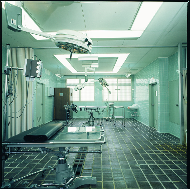 旧病院の診療手術室。昔の手術室はタイル貼りが主流でした。