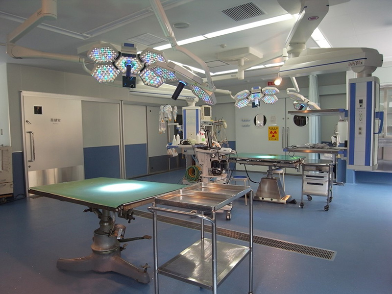 診療手術室。奥にはレントゲン・CT室があり、作業動線を考えた造りになっています。