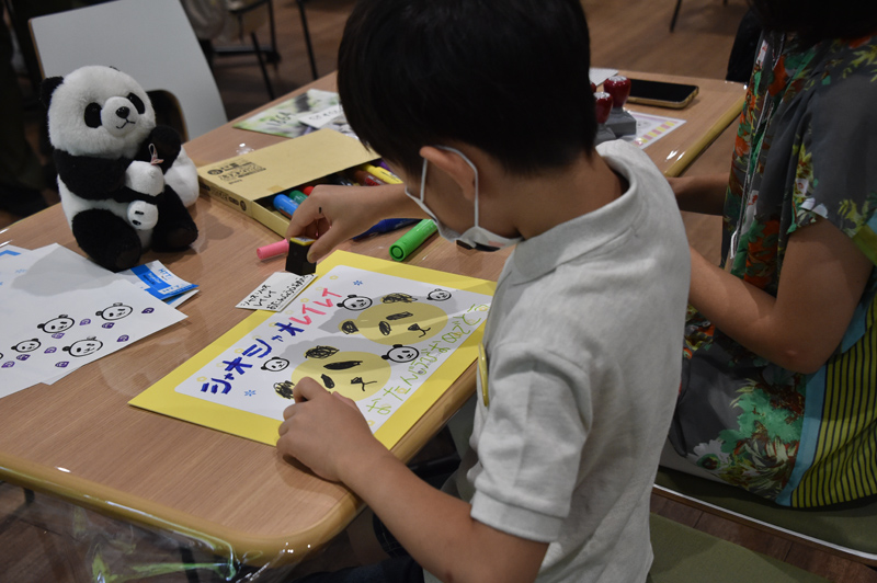 また、6月18日、19日には、来園したお子さま向けのイベント「シャオシャオとレイレイにお誕生日メッセージを書こう!」を実施しました。2日間で約160人の子どもたちが、シャオシャオ・レイレイの成長をお祝いするためのメッセージカードを作成してくれました。