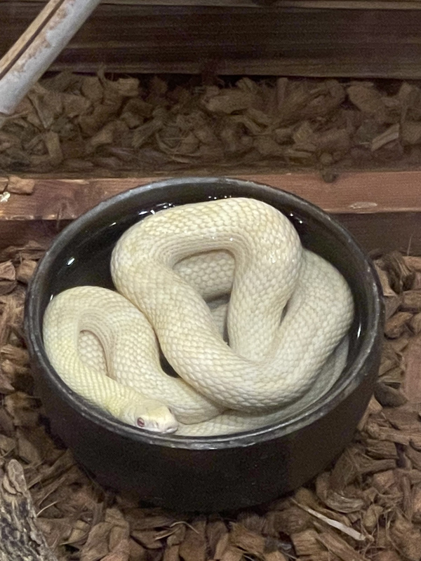 動物の体調管理のため、アオダイショウをバックヤードのあたたかい部屋に移動しました。これにともない、11月9日(火)からアオダイショウはご覧いただけなくなります。ご了承ください。