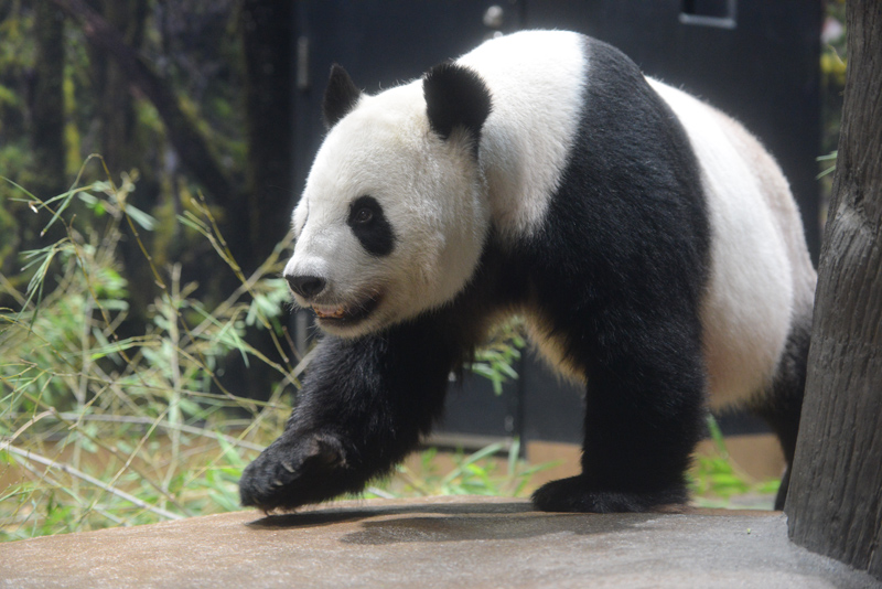 えさとしてモウソウチク、シノダケ、マダケなどのタケ・ササ類を中心に与えており、副食であるニンジン、パンダ団子、リンゴもよく食べています。