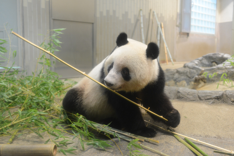 えさとしてトウチクやモウソウチク、シノダケなどのタケ・ササ類を中心に与えており、副食であるニンジン、パンダ団子、リンゴもよく食べています。
