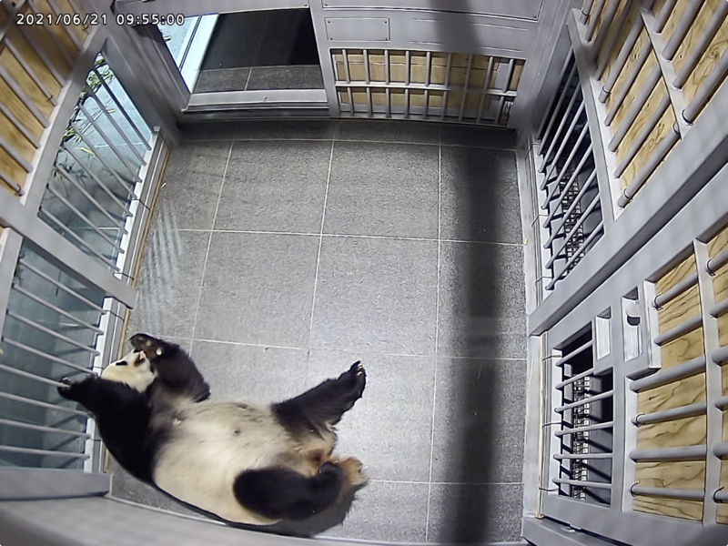休息時間は、6月2日ごろに通常の2倍程度に増加し、その後も休息時間の多い状態が続いています。また、前肢や後肢、床、陰部を舐める行動が現れています。