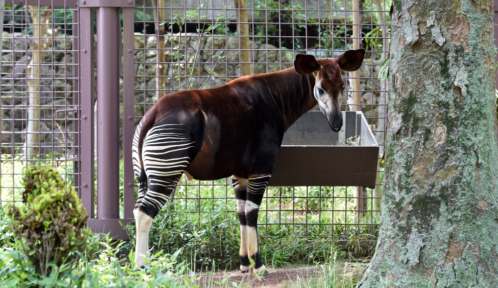 上野動物園では、オカピのオス「バカーリ」の移動に向けて輸送箱に慣らす訓練をおこなっていますが、2020年9月26日(土)以降、屋外展示場と寝室の間に設置した輸送箱にオカピが自由に出入りできるようにします。このため、ご覧になれない時間が生じることがあります。ご理解くださいますようお願いいたします。