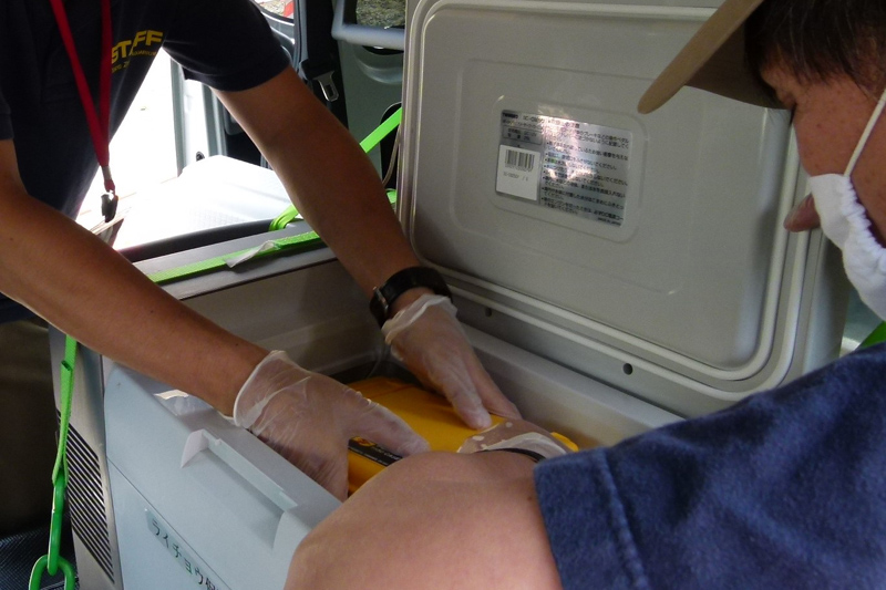 飼育スタッフの手により携帯用恒温器(温度を一定に保ちながら卵を運ぶ装置)におさめられた卵は、6月3日の朝に当園を出発し、同日の午後に無事、長野県で環境省スタッフに提供しました。
