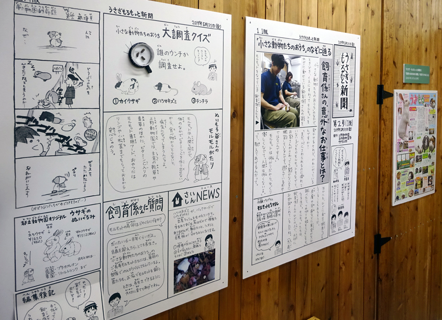 「小さな動物たちのおうち」では壁新聞風に掲示するとともに、印刷した新聞を配布用に置いてあります(※数量限定です)。「うさもる新聞」第2号のPDFファイルは下記リンクからダウンロードできますが、掲示された壁新聞には“特別なしかけ”があります。ぜひ「小さな動物たちのおうち」まで足をお運びください。