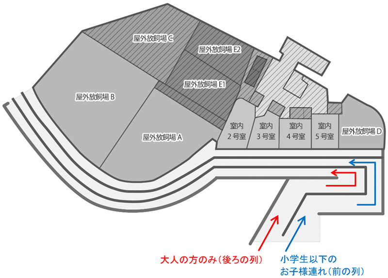 できるだけ多くの方にパンダを観覧いただくとともに、小学生以下のお子様が観覧しやすい環境をつくるため、観覧ルートについては次のとおりといたします。