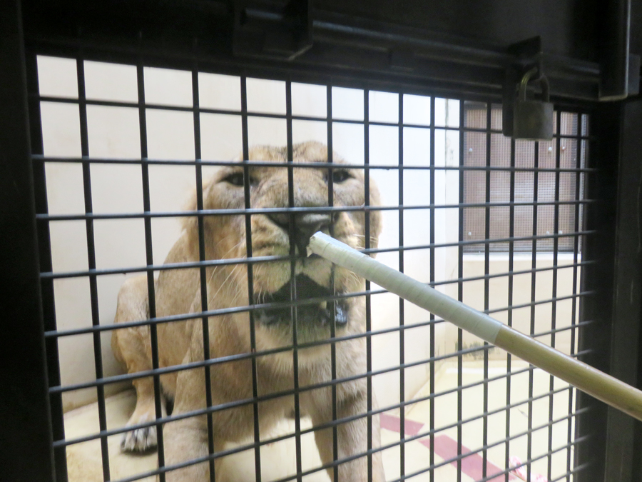 トラとライオンのハズバンダリートレーニング実施中