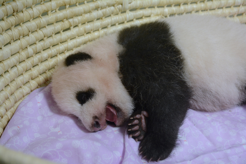 ジャイアントパンダ「シンシン」出産その後[6]子の模様はますますはっきりと