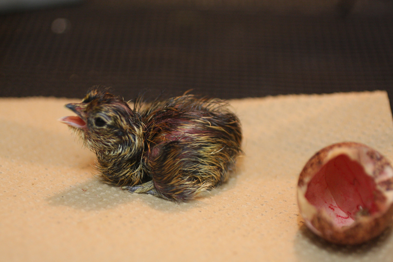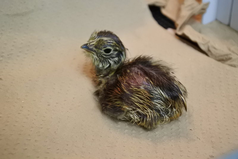 11時 当園のペアが産卵した卵から1羽目が孵化