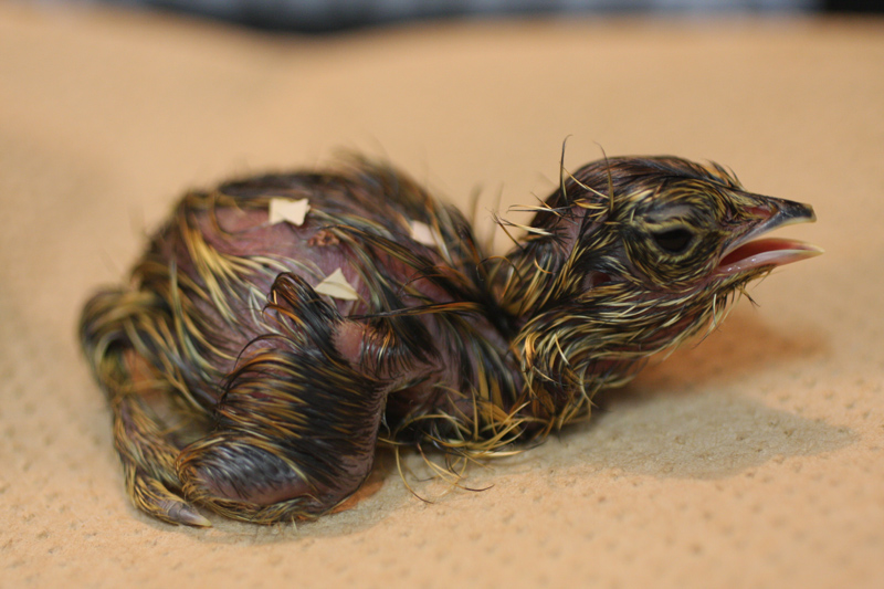 孵化したライチョウのひな 左:U-06(上野産卵)、中:U-07(上野産卵)、右:T-05(富山産卵)