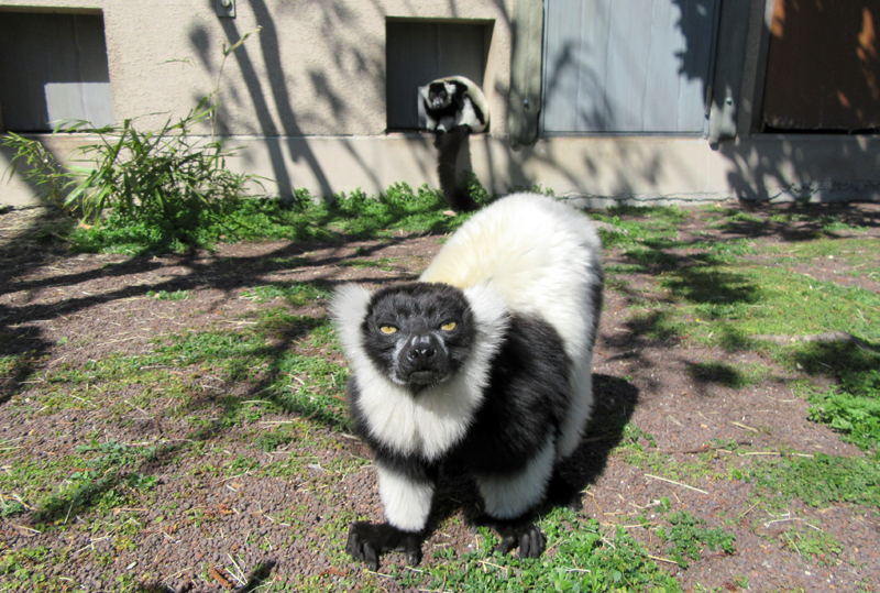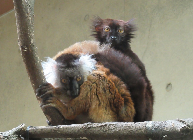 クロシロエリマキキツネザルの母親。奥に父親がいる