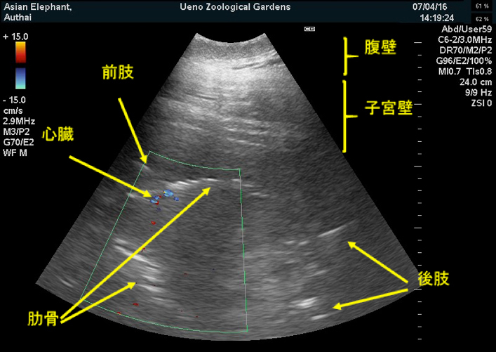 アジアゾウ「ウタイ」腹部超音波検査画像(2016年7月4日撮影)出産予定日