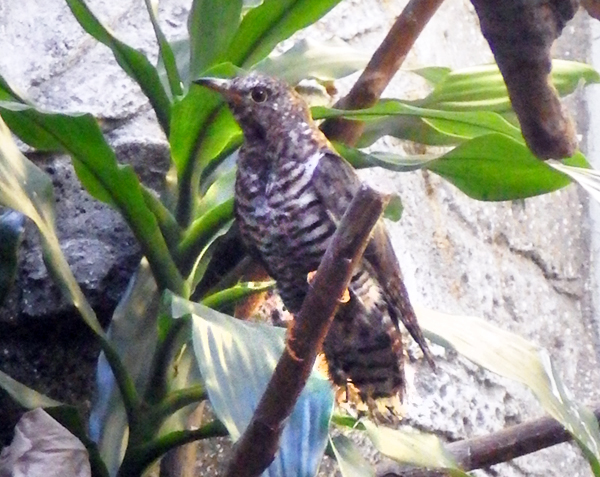 今回動物園にやってきたホトトギスはケガをして保護された個体1羽です。ホトトギスは冬のあいだ暖かい国に渡ってすごす鳥ですが、この個体は多少飛べるものの、渡りのための長距離飛翔は無理なので野生に戻すことができません。そこで一年中暖かいバードハウスで飼育することにしました。