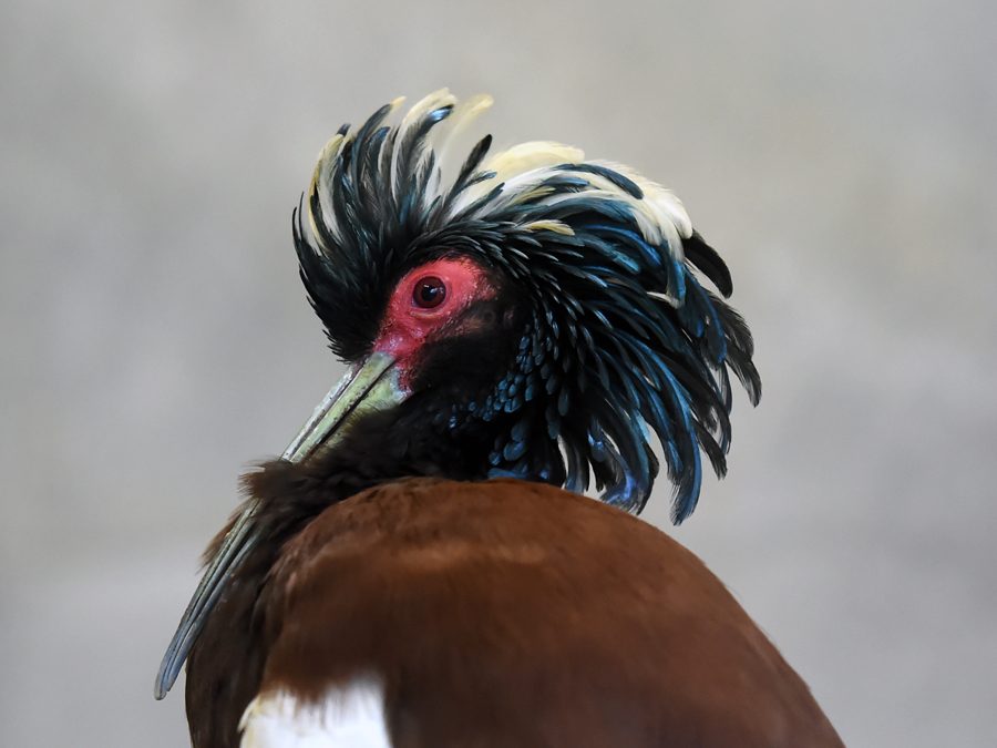 マダガスカルトキは、成長とともに冠羽に白い羽が現れます。私はまだこの鳥が孵化してから成鳥になるまでの実際の過程を見たことがありません。2羽を健康に飼育し、そして来園者のみなさんとともに若いオスの成長を観察していきたいと思っています。